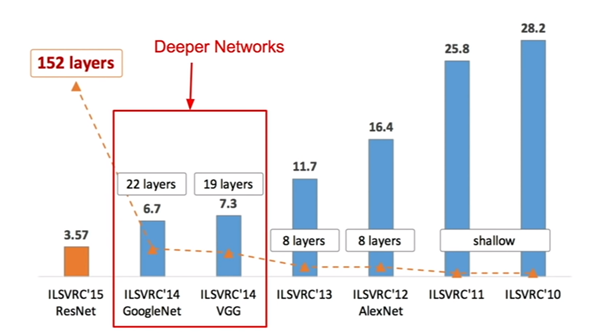 8개의 layer를 가지는 AlexNet에서 16~19개의 layer를 가지는 VGGNet으로 발전했습니다.