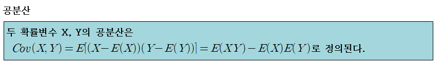 공분산은 확률변수 X가 변할 때, Y가 변하는 정도로써, 두 개의 확률변수의 관계를 보여줍니다.