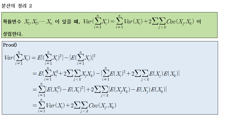 다음으로, 분산의 정리에 대해서 배워봅시다. 분산의 정리도 평균의 정리와 마찬가지로 이후 단원들을 배우기 위해서 필수적으로 외워야합니다.