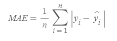 MAE는 SSE와 비슷하지만 오차의 제곱이 아닌 오차의 절대값을 평균 낸 값입니다.