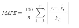 MAPE는 MAE를 계산할 때 실제값에대한 상대적인 비율을 고려하여 계산된 값입니다.