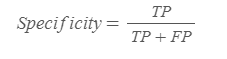 Specificity는 부정을 맞춘 개수를 실제 부정의 개수를 나눈 값으로, 실제 부정중에서 부정으로 예측된 개수의 비율을 나타냅니다.