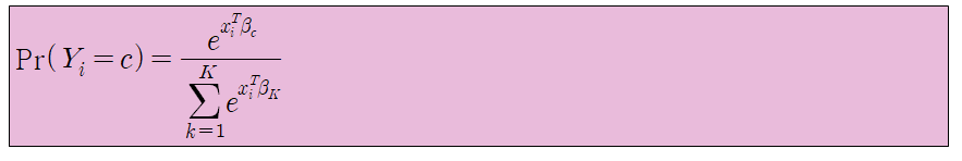 그리고 Y가 총 K개의 Level 를 가진다고 할 때, 각 Level로 예측될 확률은 다음과 같습니다.