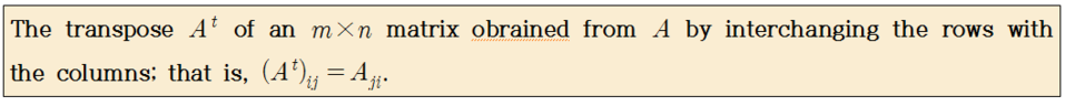 전치 행렬의 정의를 보시면, 말 그대로, 행과 열을 바꾼 행렬입니다.