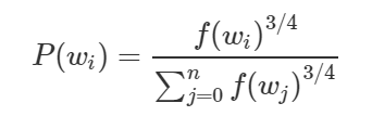 어떤 negative 단어 w_i 가 뽑힐 확률은 위와 같은 확률을 따릅니다.