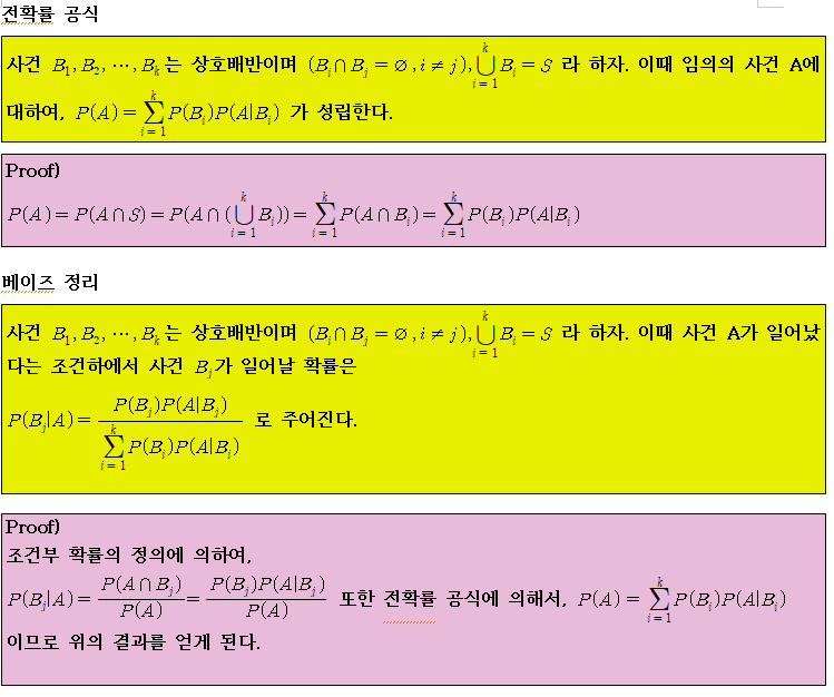 특히 베이즈 정리는 통계학 전공을 하신다면, 꼭 알아두시는것을 추천합니다.