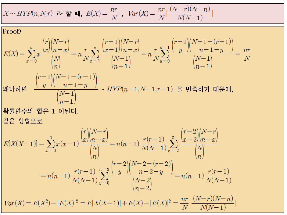 이제 초기하분포의 평균과 분산을 구해보도록 하겠습니다.