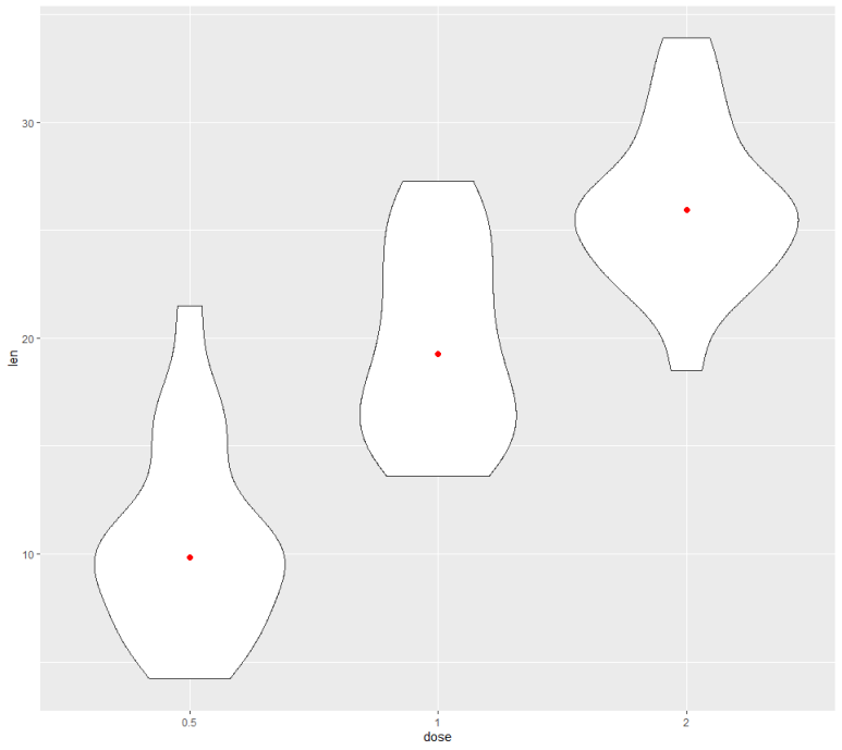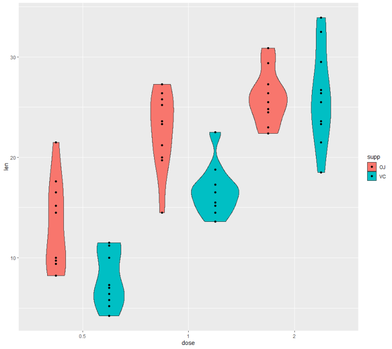 p <- ggplot(ToothGrowth, aes(x=dose, y=len)) +