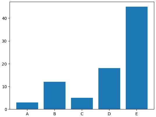 이제 x축에 A B C D E 와 함께 y축에 height를 가지를 막대 그래프를 그려보겠습니다.