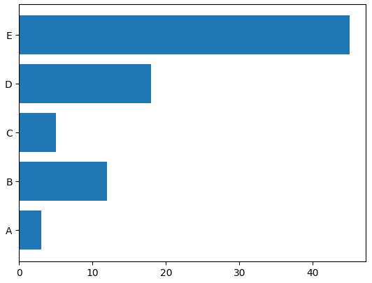 hbar를 사용함으로써, 옆으로 누운 막대 그래프를 그릴 수 있습니다.