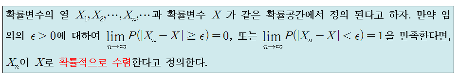 우선 대수의 법칙을 알기 위해서는 확률수렴에 대한 개념을 알아야합니다.