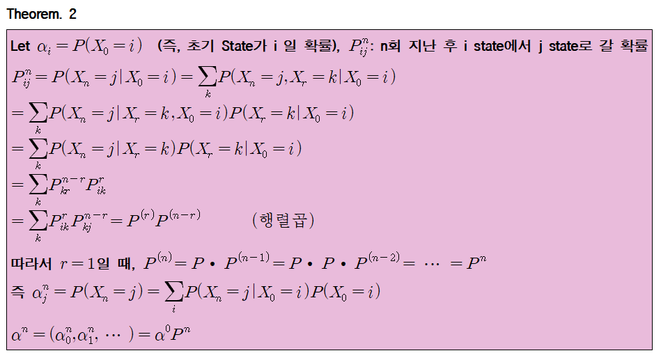 위의 정리를 Chapman - Kolmogorov Equatuin (C-K Eq.) 라고 합니다.
