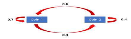 Coin에 대한 Markov chain을 그림으로 나타내면 다음과 같다.